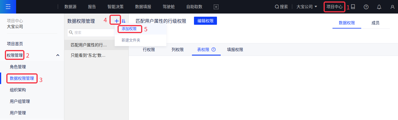 数据表权限的创建流程和上文行级权限的基本一致,这里不再赘述。下面将直接介绍配置流程: