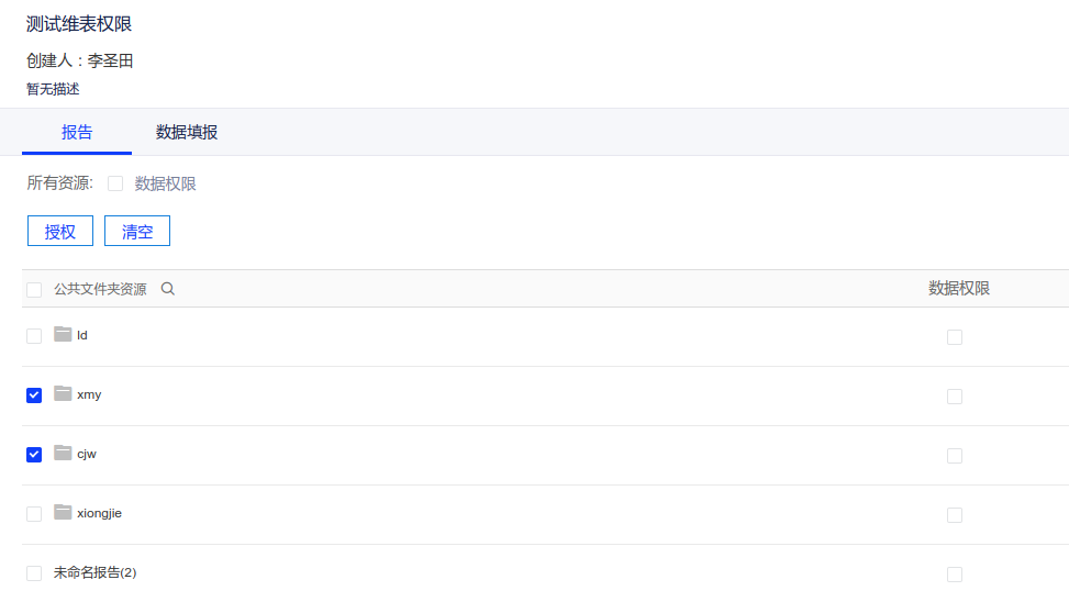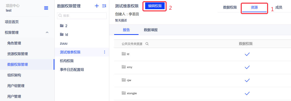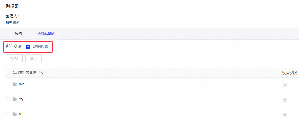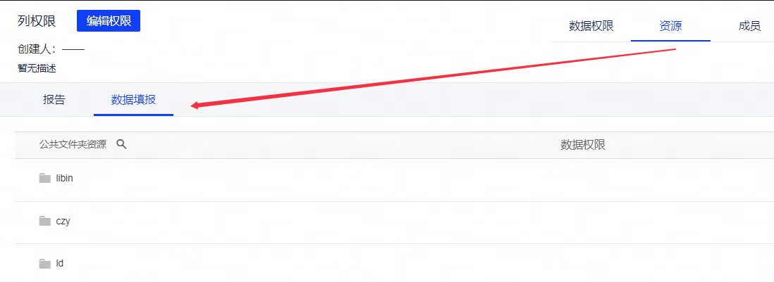 原数据权限管理-资源tab下的报告旁新增了【数据填报】tab