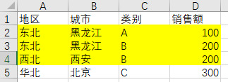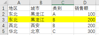 权限规则AND指设置的这两个字段同时满足。赋予到用户身上时,在下方的订单表中,用户只能看到第3行数据,东北—黑龙江—B—200