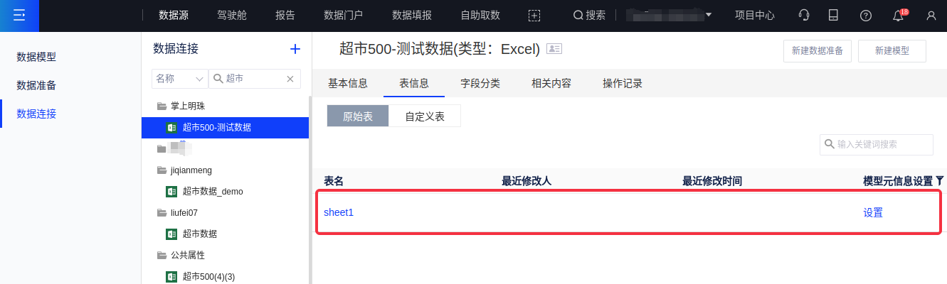 表权限应用之后,用户只能查看、选择和使用有权限的表;没权限的用户将无法在模型,数据准备等应用中使用该表。