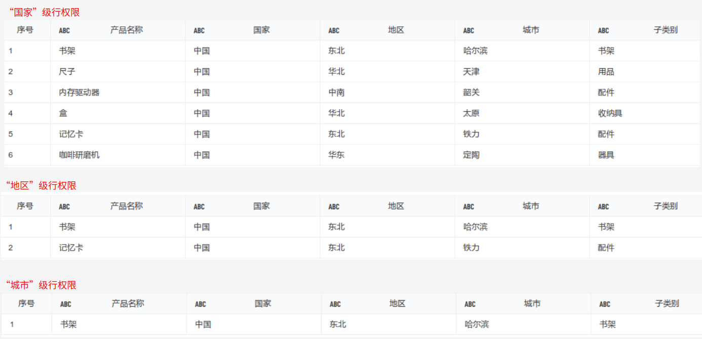 本产品支持对角色设置数据访问权限,权限控制粒度可达到行和列级别。接下来将通过具体的示例来介绍如何设置行级权限及列级权限。