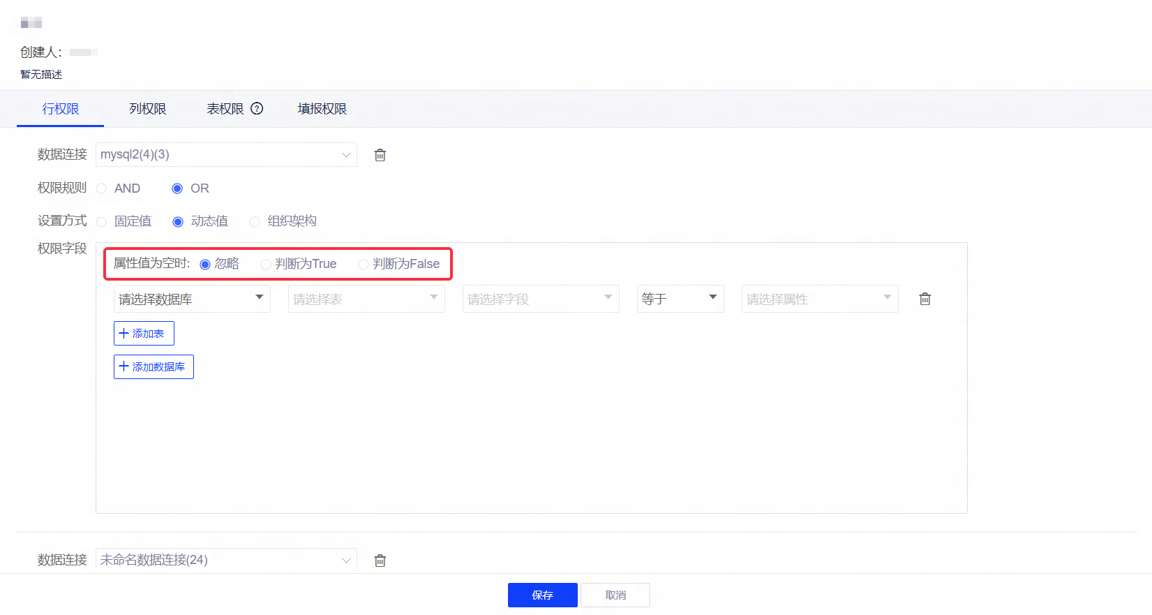 设置多个字段时,权限与权限之间可以选择AND,满足字段1和字段2;选择OR,满足字段1或字段2。