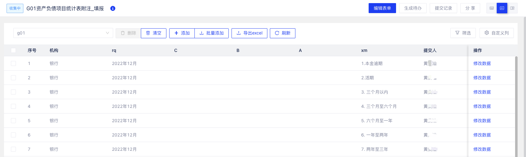 用户在填报的数据管理页面仅能看到自己有权限的填报内容。