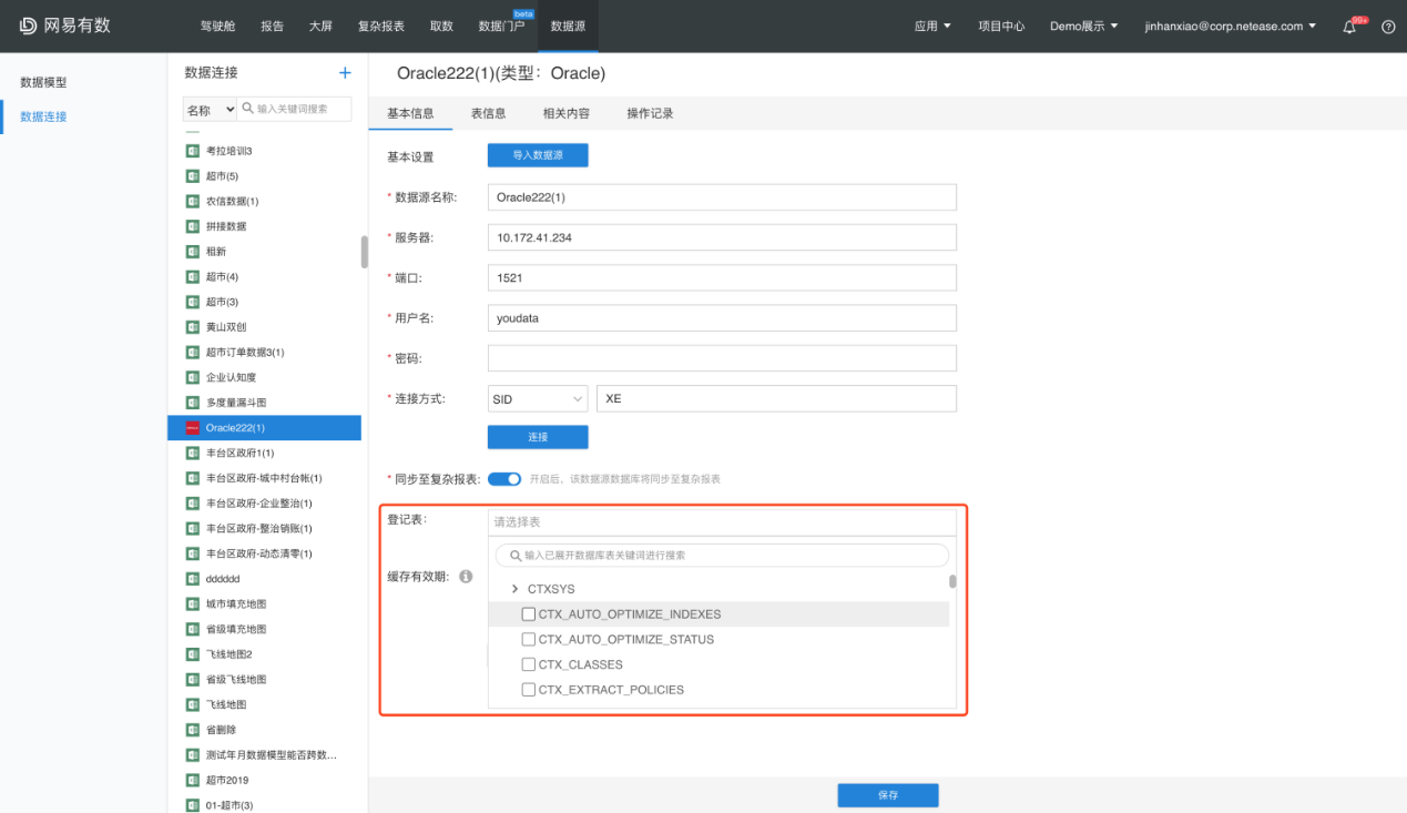 进入【数据源-数据连接】模块,打开需要同步的数据连接,目前支持:MapR Hadoop Hive、Apache Impala、Oracle、SQLServer、DB2、MySql几类数据源的同步。