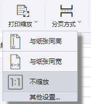 设置打印缩放模式,可选择不缩放、按纸张同高、按纸张同宽,默认不缩放。若需要其他更多设置,可单击“其他设置”进入打印设置页面。