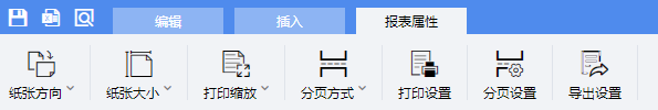 在报表属性中可以进行打印、分页和导出的相关设置。报表属性的菜单如下图所示: