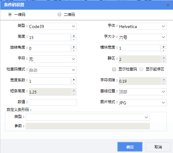 一维码的码制类型,有Code39码、Code128码制和Custom共三种。