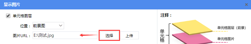 - 单元格图层:添加的图片作为单元格的背景,单元格中同时可输入数据,并且图层可分为前景图和背景图。