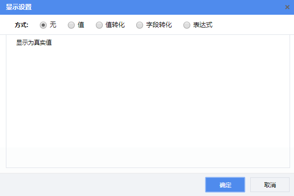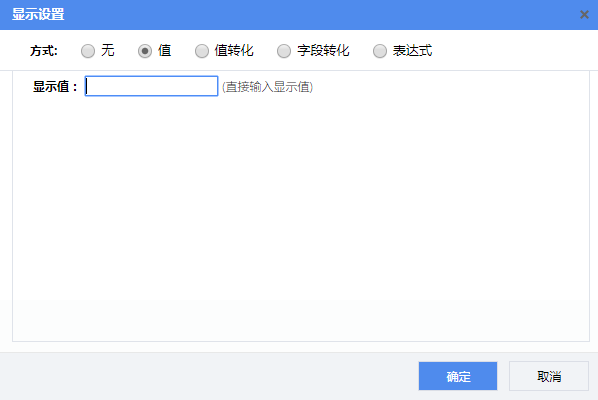 - 值:直接将本单元格内容替换为某个特定的显示值,直接在输入框内输入需要显示的值即可。设置界面如下图: