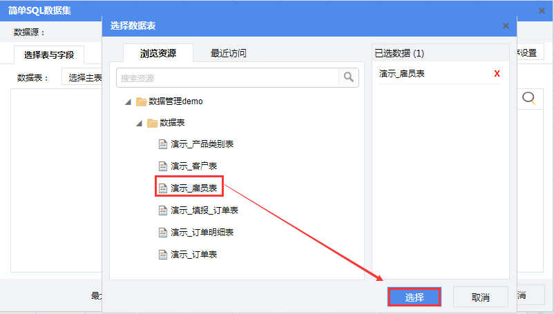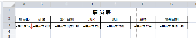 A3单元格表达式:=雇员表.Select(雇员ID)