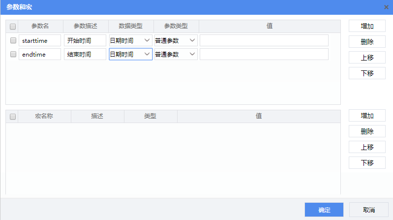参数的名称是唯一区别各个参数的依据。可以根据需要自己编辑,数据集和表达式中引用参数时,用的就是它的名称。比如:starttime