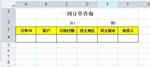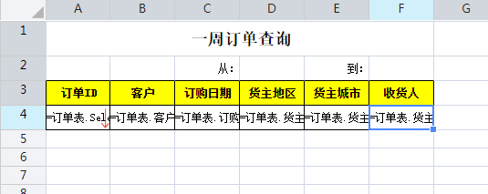 ,分别将“客户”、“订购日期”、“货主地区”、“货主城市”、“收货人”分别拖拽至B4、C4、D4、E4、F4单元格。