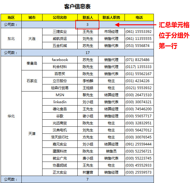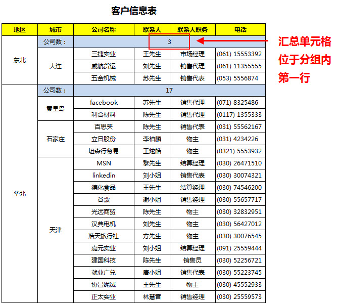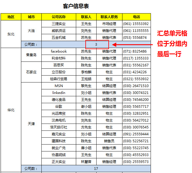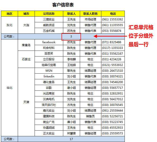 分组汇总的不同位置