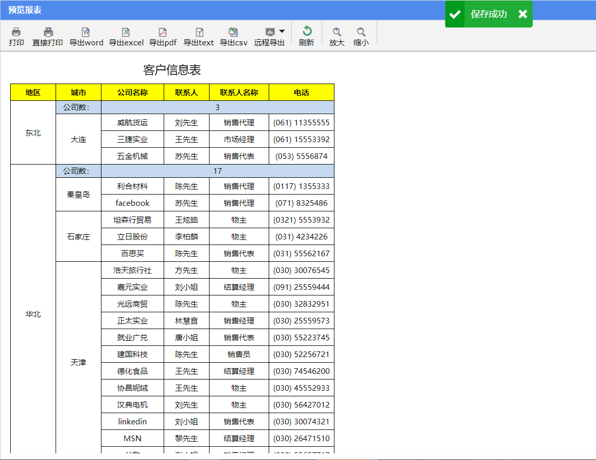 点击【预览】按钮,保存并预览报表。