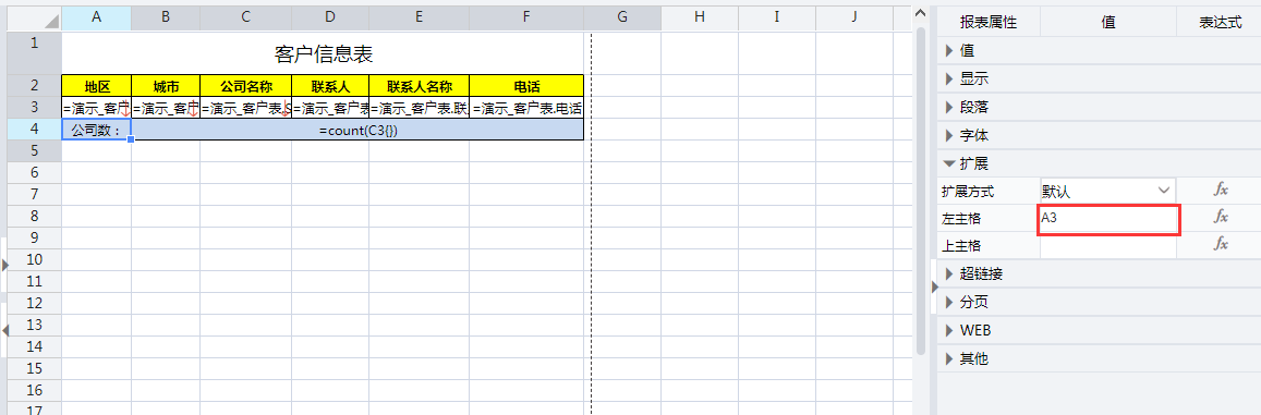 通过以上示例报表,可以了解主子格、以及人为设置主格和扩展在报表中的应用。