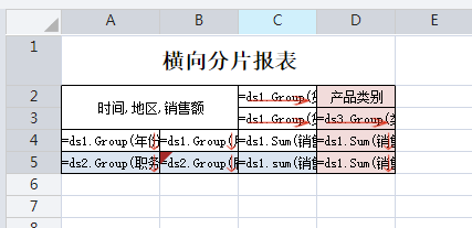 横向上右侧分片的上表头是按照产品类别进行分组,分组数据来自一个单独的数据集。