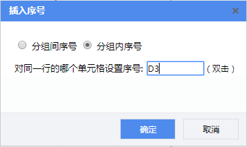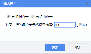 选中A3单元格,打开设计器工具栏中的【插入】—【序号】向导,在插入序号页面,选择“分组间序号”,单元格设置为D3。