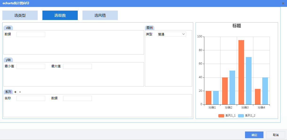 不同统计图类型的取数结构并不完全一样,下面介绍不同统计图类型的选取数页面。
