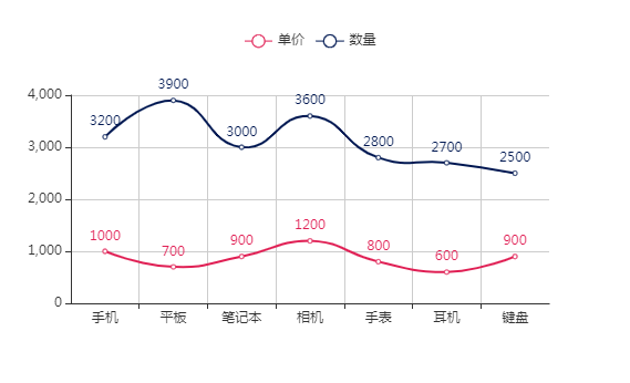 折线图是将值标注成点,并通过直线将这些点按照某种顺序连接起来形成的图形。如下图所示: