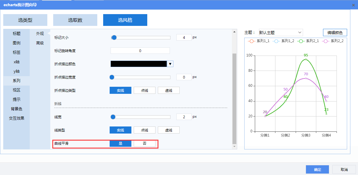 设置折线曲线平滑。
