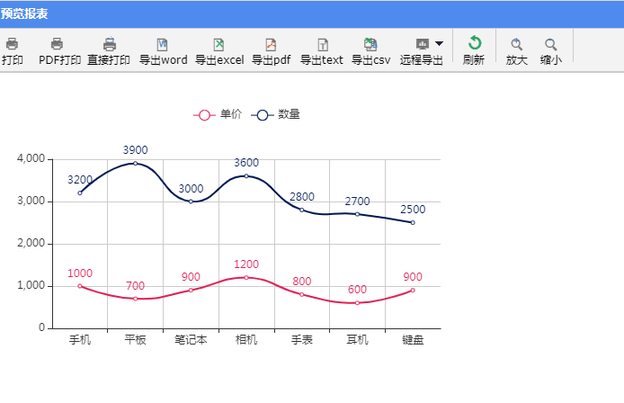 点击预览按钮,保存并预览报表。