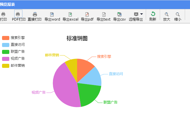 饼图是以扇形区域大小表示每一个数值相对于总数值的占比。如下图所示: