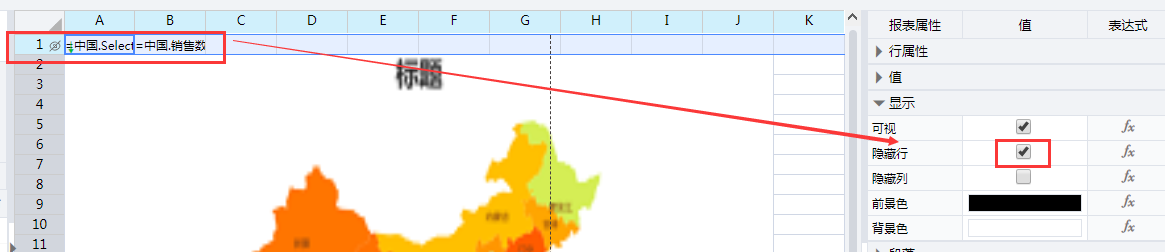 若报表展示时不需要显示数据,则设置第一行隐藏。