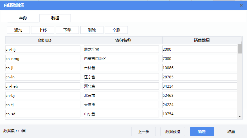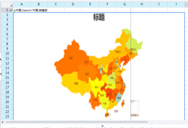 A1单元格表达式为:=中国.Select(省份名称) B1单元格表达式为:=中国.销售数量
