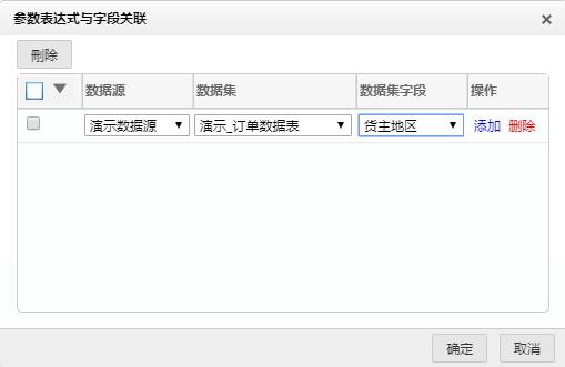 进入设置界面后,要选择需要设置的数据源、数据集和数据集字段,关联的字段其参数取值方式默认为“当前单元格值”。如下图所示:
