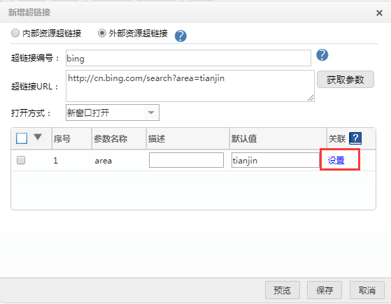 设置关联的作用是将当前超链接资源与某些数据集的字段相关联,当使用该数据集制作报表时,系统自动将与该字段相关联的链接自动引入,无需为该字段手动设置超链接。