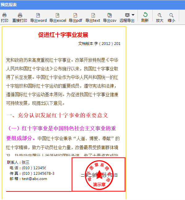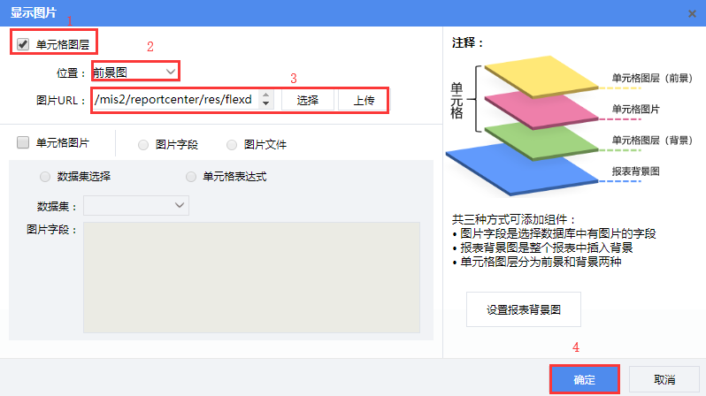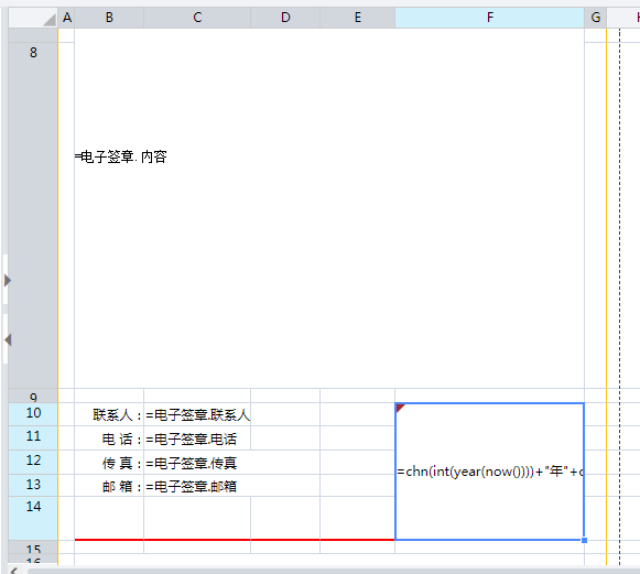 应用场景示例第一步 制作普通报表第二步 设置电子签章第三步 保存预览应用场景电子签章为透明背景的图片,很多时候我们希望在报表中嵌入电子签章,实现完备的电子商务办公。如下图: 示例第一步 制作普通报表先按照制作普通报表的方法,制作一张样式如下图所示的自由格式普通报表。 第二步 设置电子签章选中F10单元格,打开【编辑】—【单元格图片】, 勾选“单元格图层”,选择“前景图”,选择图片后,点击【确定】,如下图: 第三步 保存预览点击预览按钮,保存并预览报表。 预览界面: