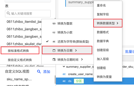 例如:有「销售日期」字段,该字段的原始类型为:字符串,在模型/报告中将该字段转换为:日期。假如对「销售日期」字段进行筛选,筛选「销售日期」在2021年11月11日之后的数据,则SQL为:
