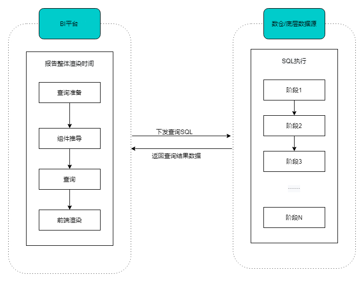 您在查看报告时,每一个图表背后的数据其实都是系统下发SQL去底层数据库查询得到的,大致可分为以下几个阶段: