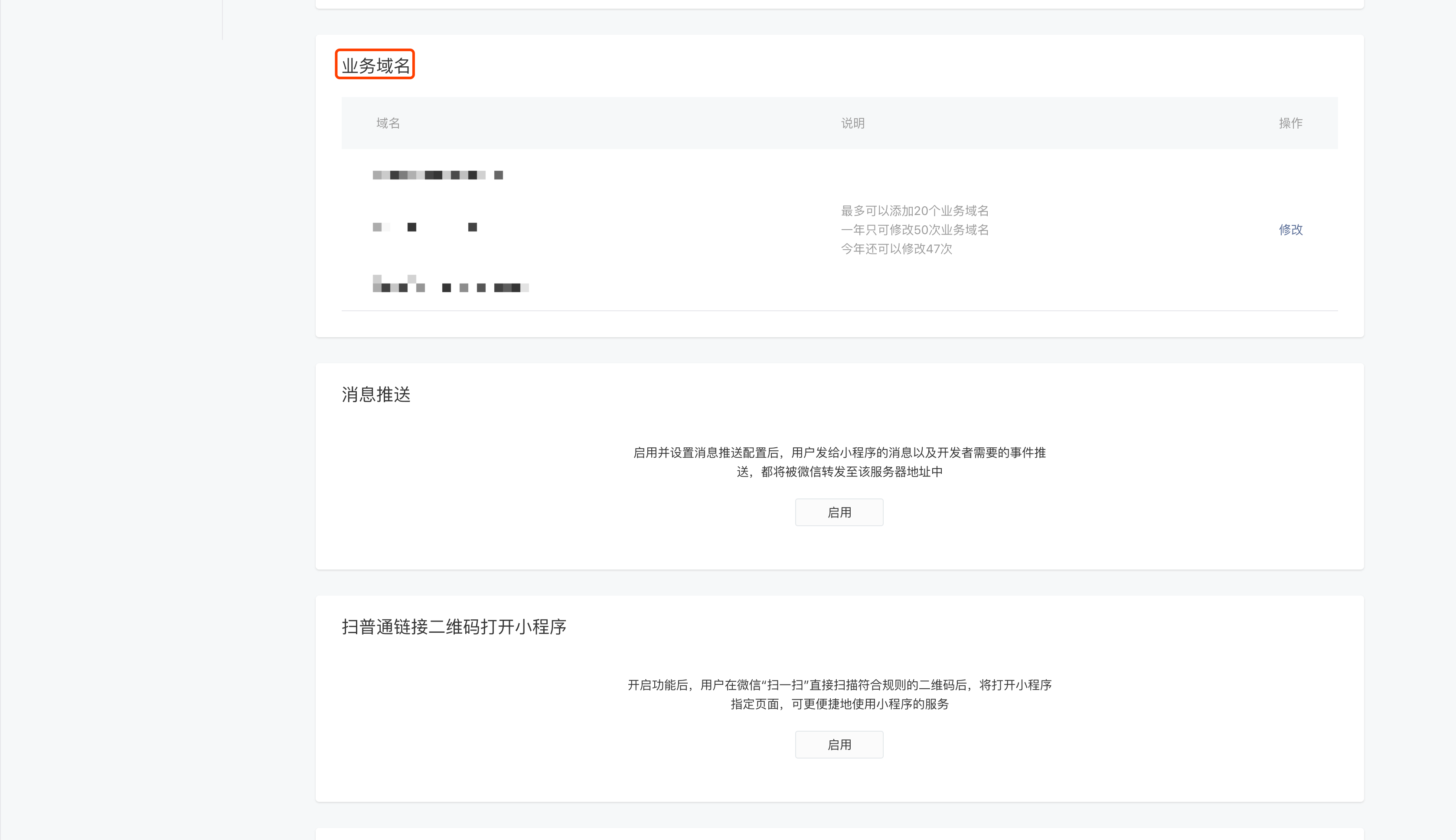 - downloadFile合法域名:表示微信可接受的下载域名,一般不需要填写,如果在有数中有使用到自己的cdn,则需要填写改cdn域名。