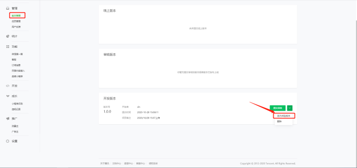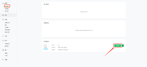 (6)返回小程序页面,在管理-版本管理中设置该版本为体验版;