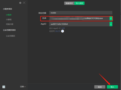 (3)解压代码包,将代码包中的project.config.json文件中的APPID替换为当前小程序的APPID(代码包请联系王我方技术支持获取对应版本包)