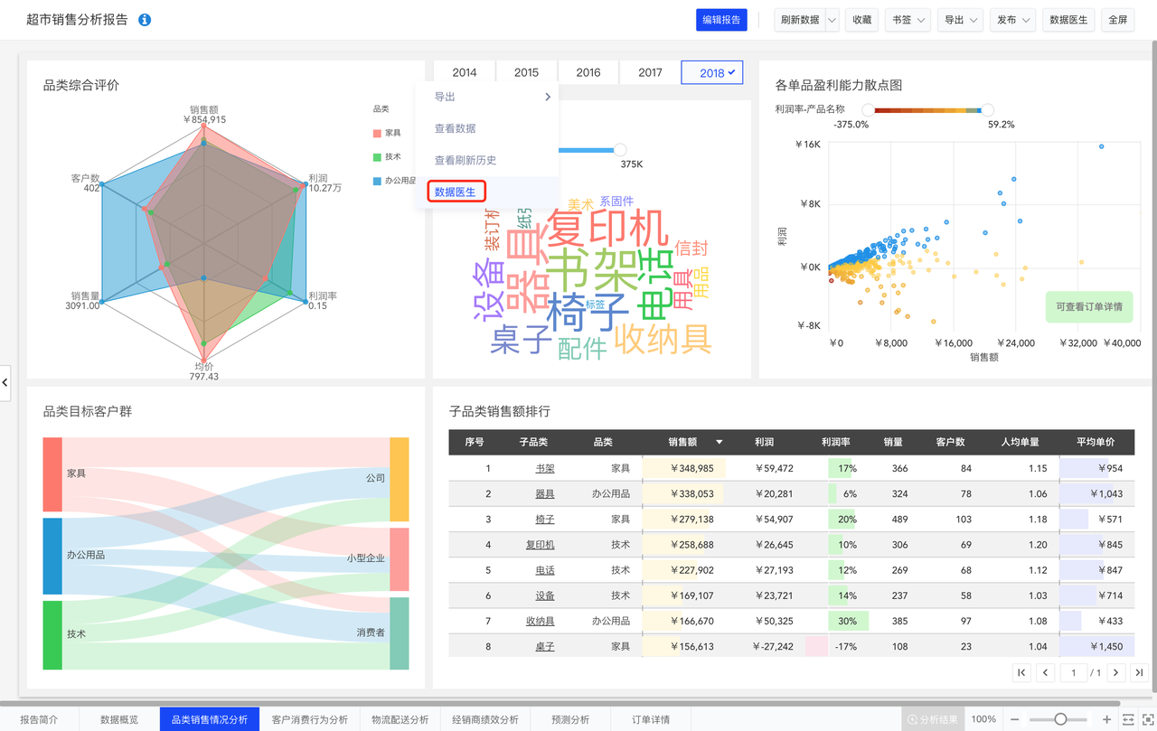 当制作报告时,您可能会遇到这些问题:报告加载时间过长,图表无法绘制等等。这时您可能需要数据医生的帮助,它为您提供了报告和组件级的性能分析、诊断、统计功能。