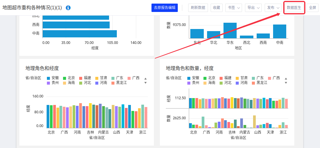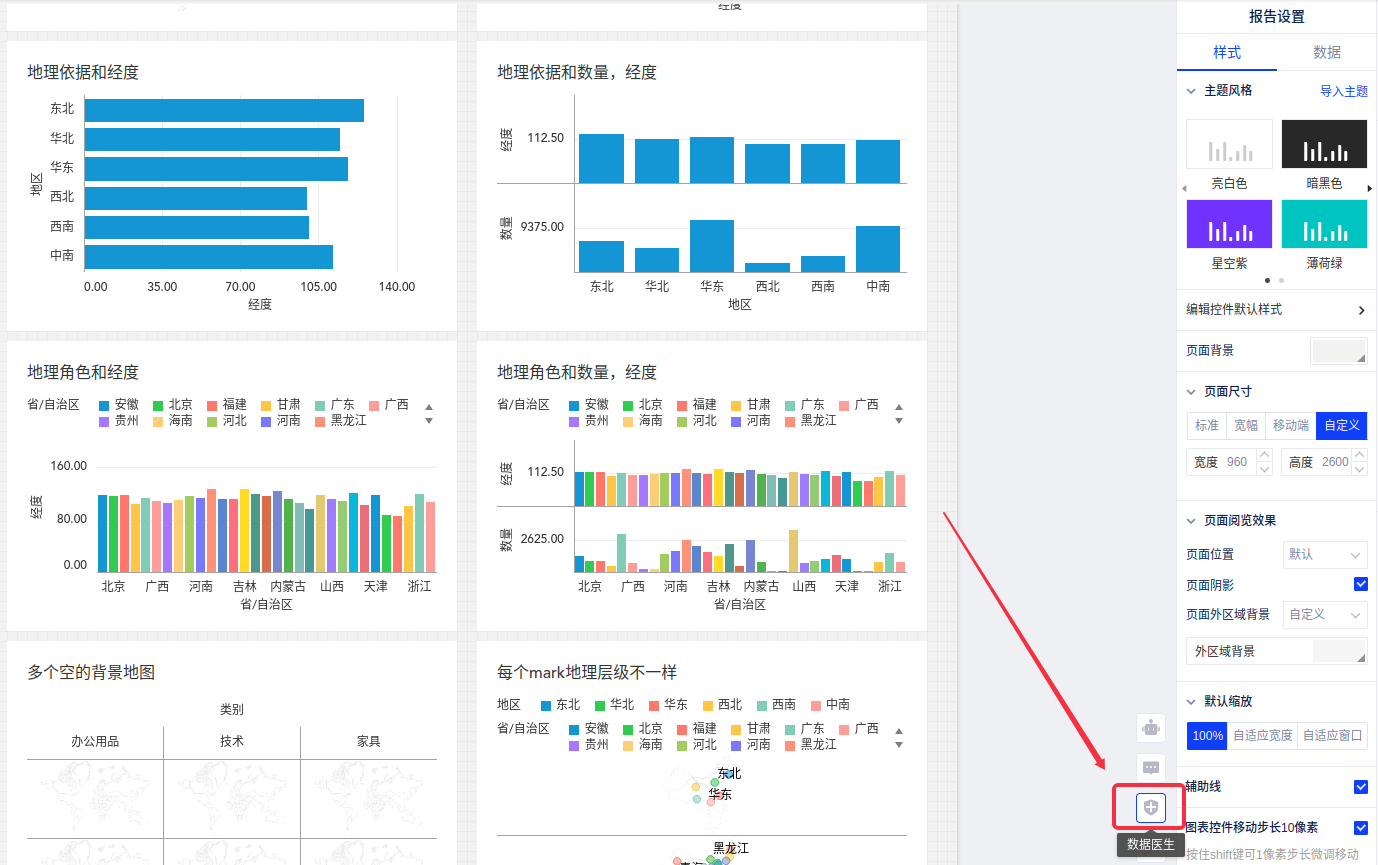 入口二:您在编辑报告时,也可点击【数据医生】按钮,对当前编辑的页面进行性能与数据的诊断;