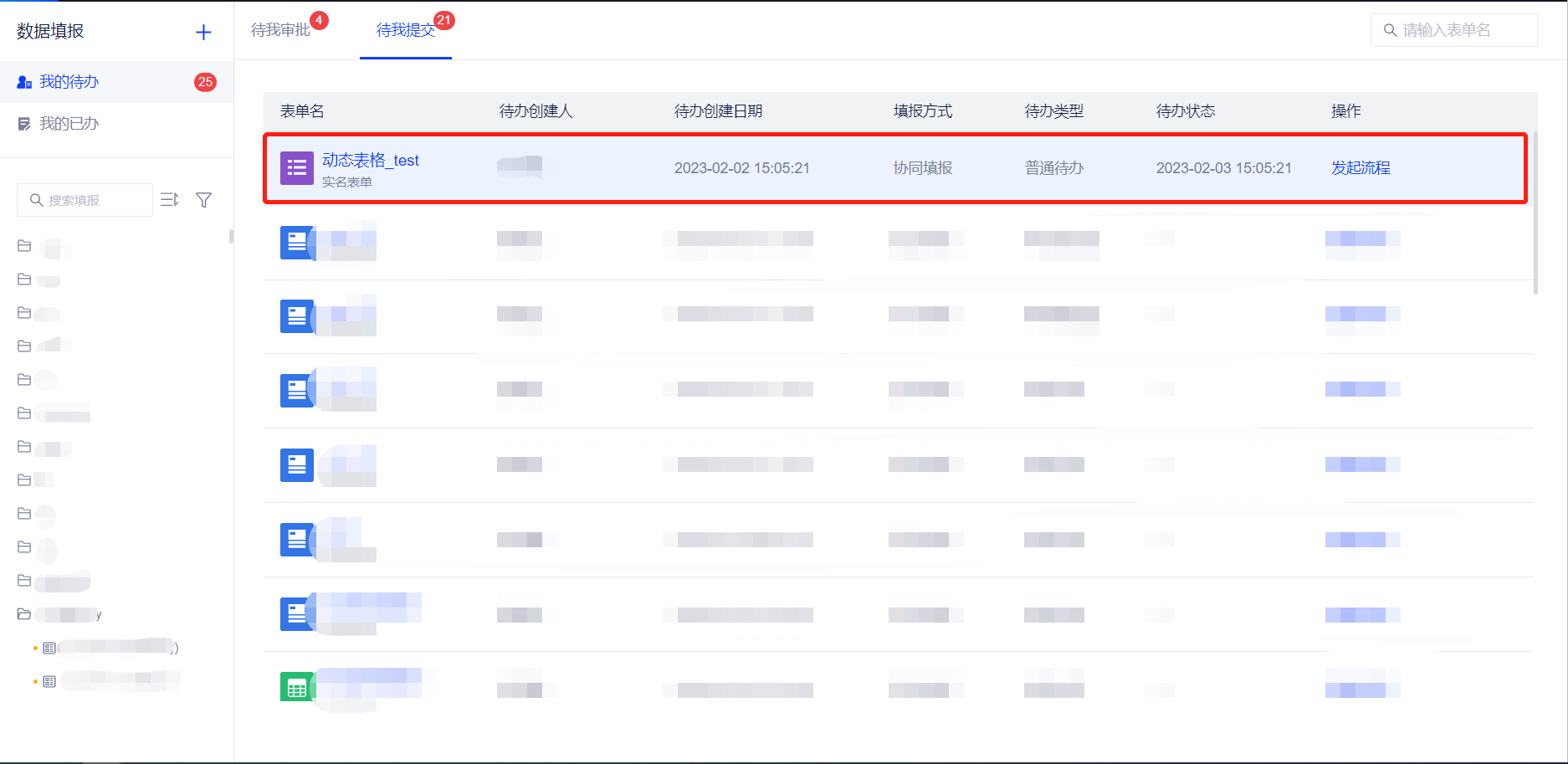 发起人点击发起流程,即可看到填报人填写的信息