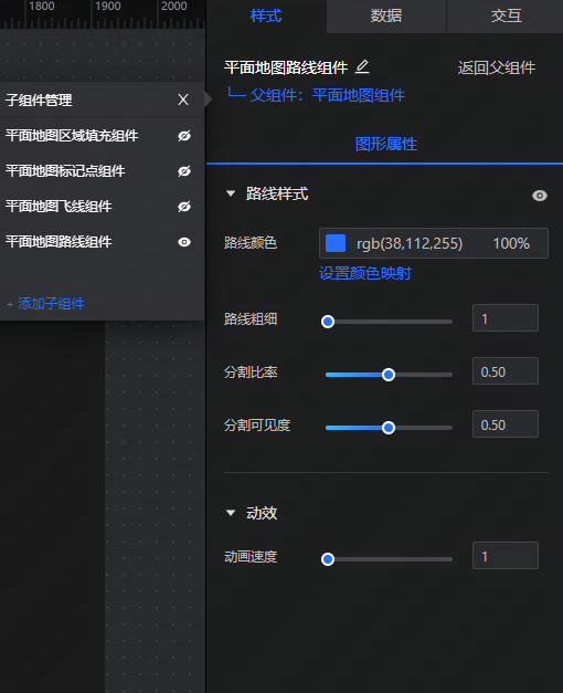 平面地图路子组件的样式设置,分为路线样式和动效: