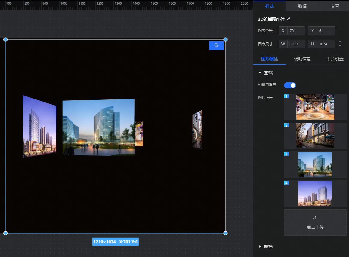 • 基础:上传需要展示的图片并选择图片是否需要自适应于轮播图。