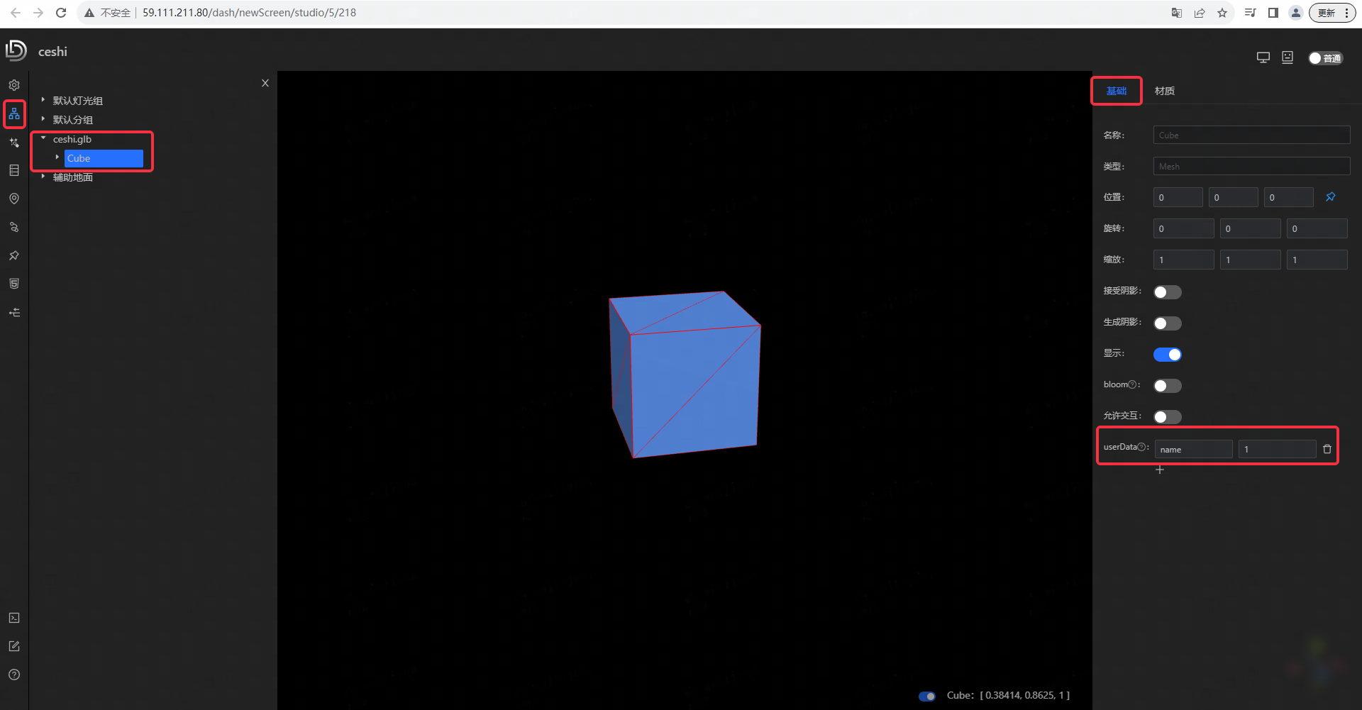 选择模型,设置模型参数。(userData是输入自定义name与value)