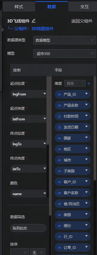 • 起点经度/纬度:飞线起点的经纬度坐标。