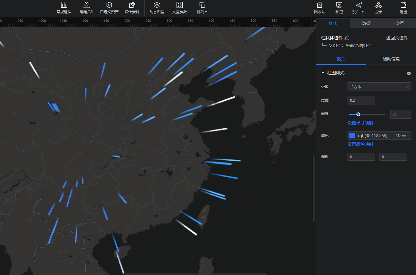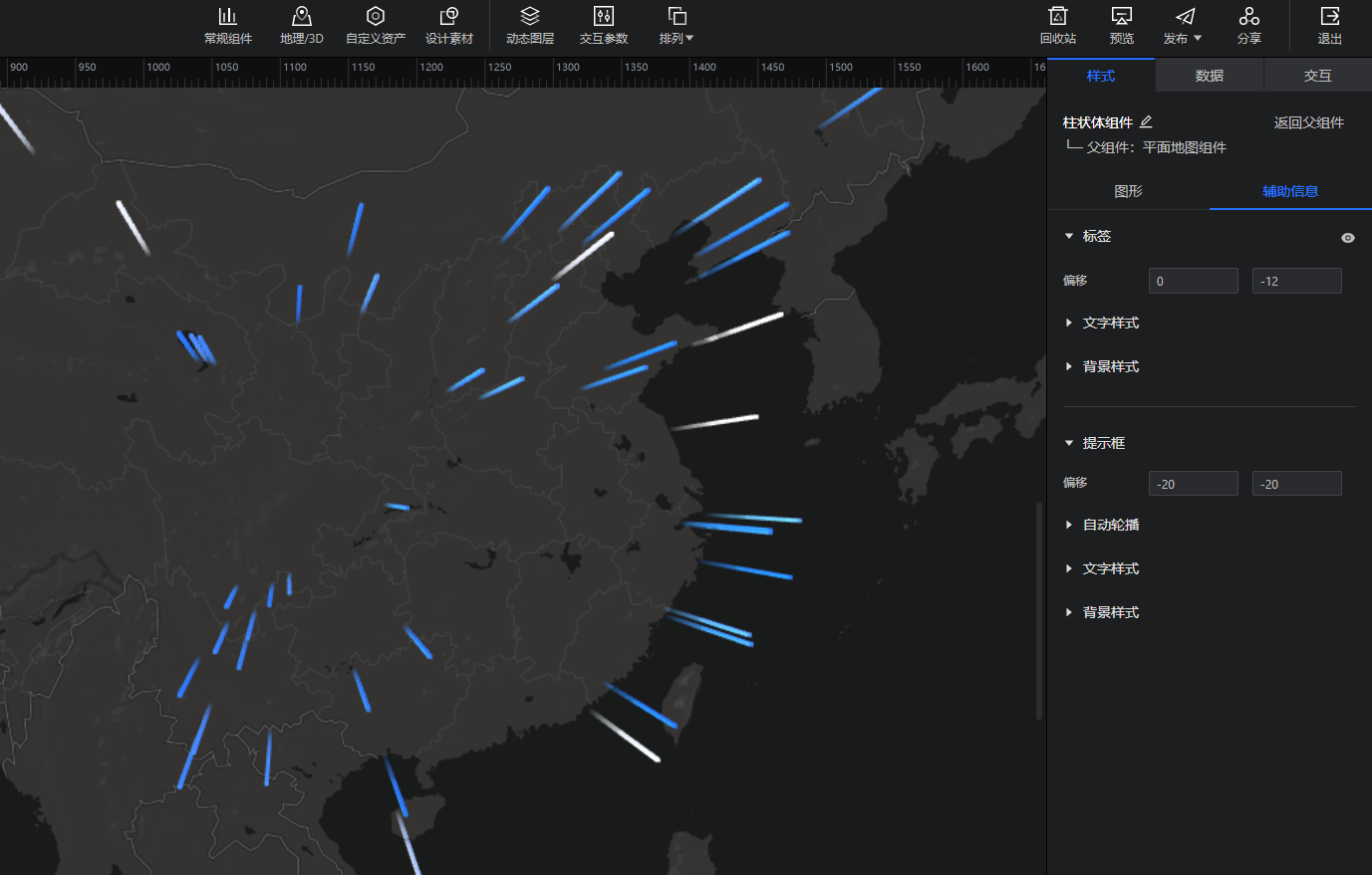 • 飞线样式:设置飞线的顶点形状,飞线粗细、颜色、长度等样式。