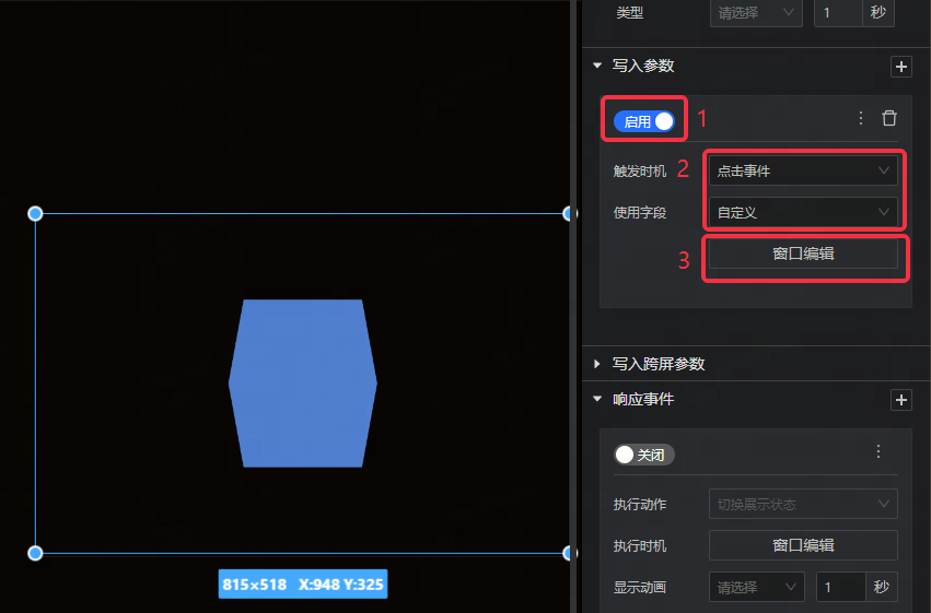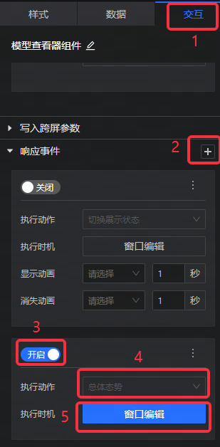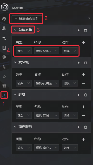 最后一步,设置模型响应事件。需要几个镜头就添加几个响应事件。