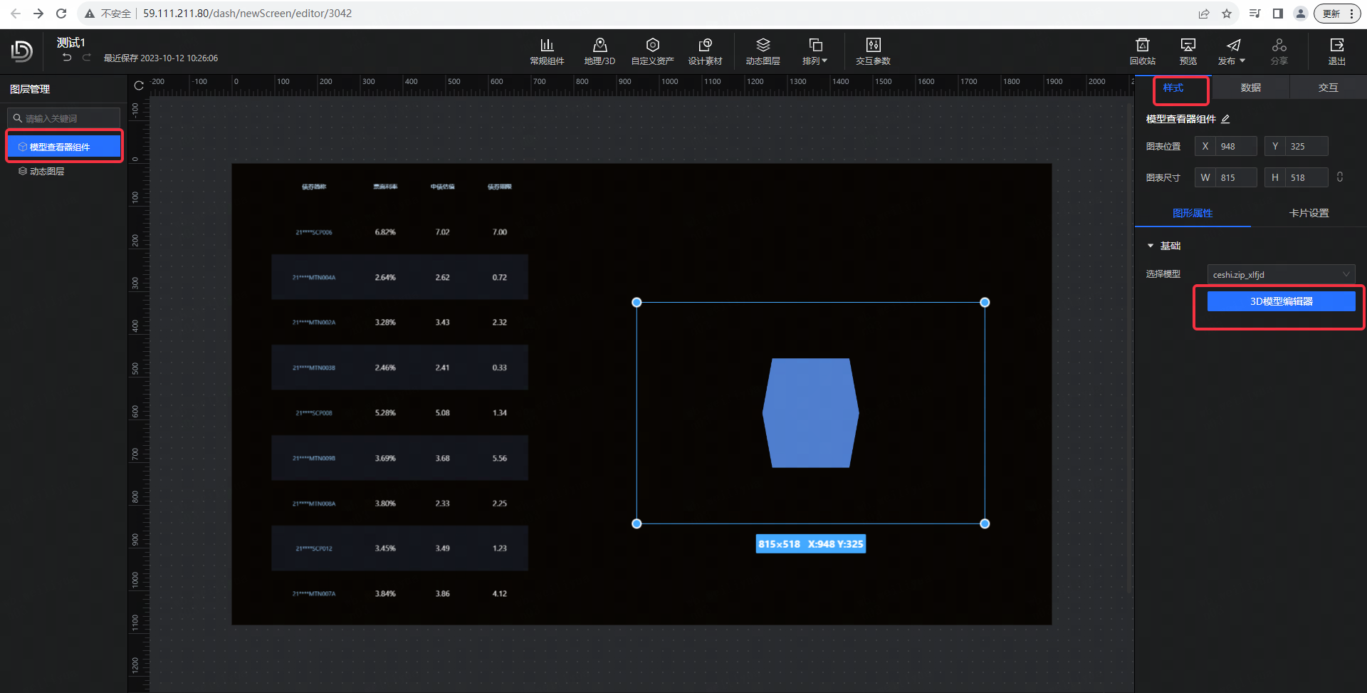 模型查看器可以通过模型进行图表或图层,模型的交互、切换及视角切换。