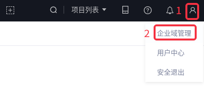 点击右上角头像icon,然后在下拉菜单中选择企业域管理,即可进入企业域管理页面。本文将介绍域管理的操作内容。