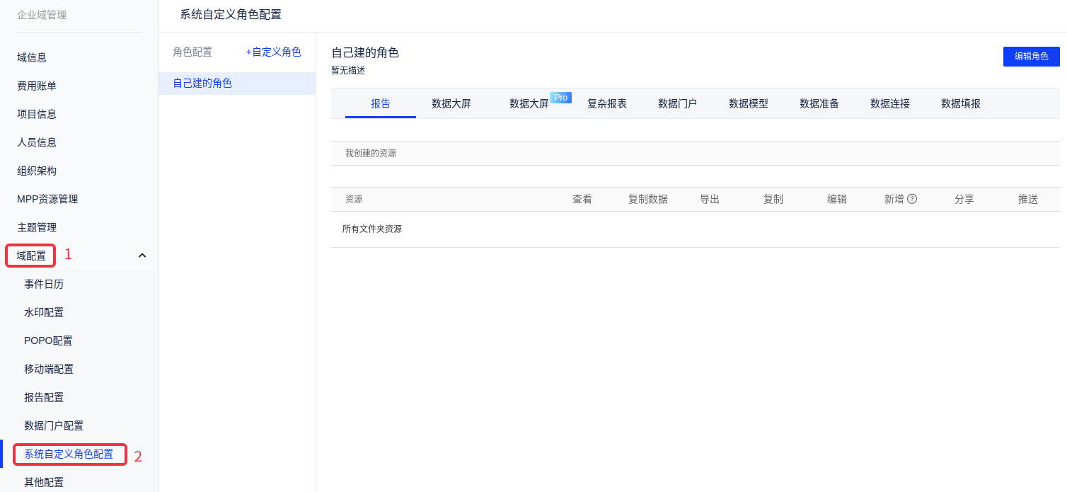 - 步骤一:以域管理员或域主身份进入[平台管理]-[域配置]-[平台权限配置],添加一个权限集