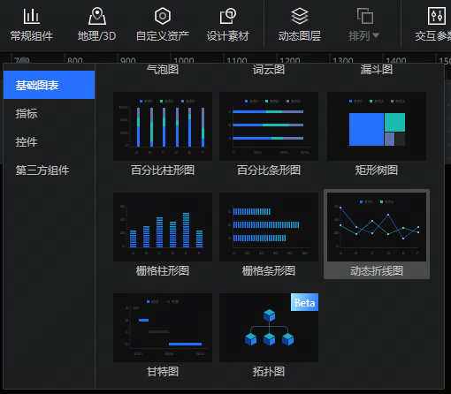 在编辑状态下点击动态折线图组件即可对其进行配置,配置内容分为样式、数据和交互三个Tab。(本节仅介绍动态折线图特有属性的配置,基础图表共性的配置请参考下文【四、组件配置】)