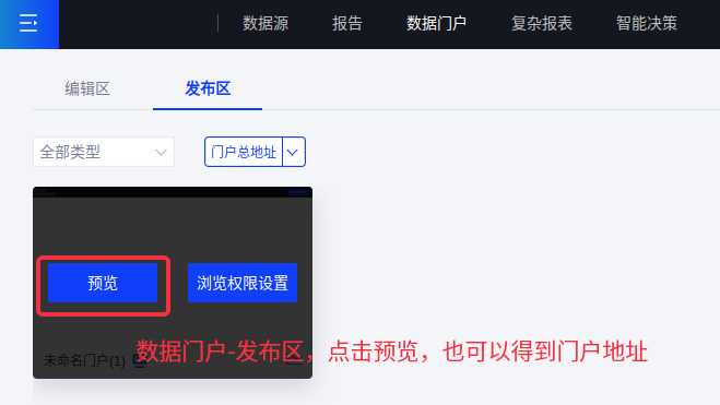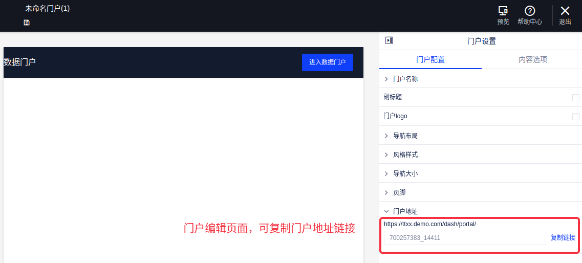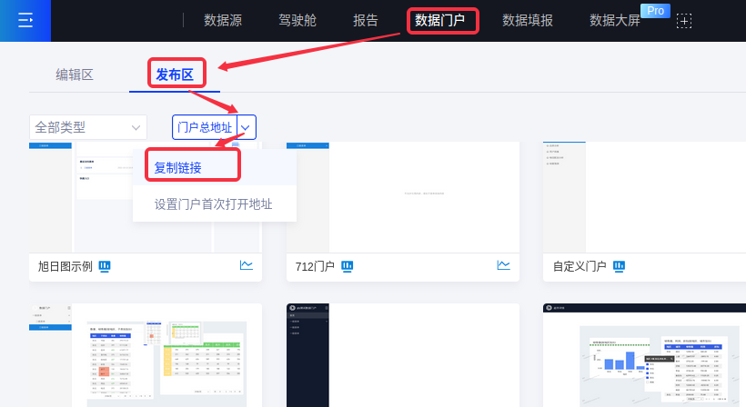 (1)数据门户-发布区,复制链接(复制前先设置好门户首次打开地址);